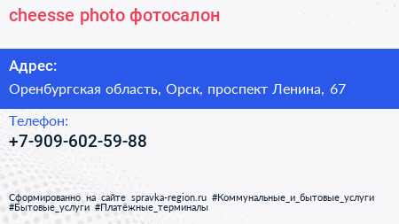 cheesse photo, фотосалон по адресу Оренбургская область, Орск, проспект Ленина, 67 в дальнейшем Организация, размещена в следующих категориях: