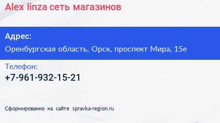 Alex linza, сеть магазинов по адресу Оренбургская область, Орск, проспект Мира, 15е в дальнейшем Организация, размещена в следующих категориях: