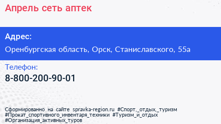 Апрель, сеть аптек по адресу Оренбургская область, Орск, Станиславского, 55а в дальнейшем Организация, размещена в следующих категориях: