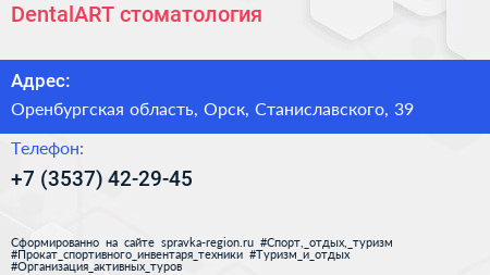DentalART, стоматология по адресу Оренбургская область, Орск, Станиславского, 39 в дальнейшем Организация, размещена в следующих категориях: