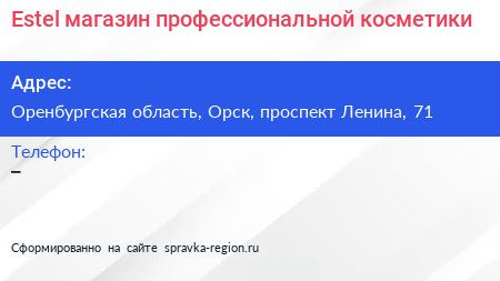 Estel, магазин профессиональной косметики по адресу Оренбургская область, Орск, проспект Ленина, 71 в дальнейшем Организация, размещена в следующих категориях: