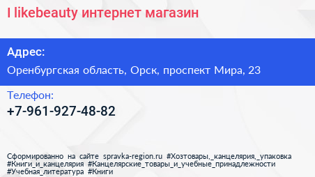 I likebeauty, интернет-магазин по адресу Оренбургская область, Орск, проспект Мира, 23 в дальнейшем Организация, размещена в следующих категориях: