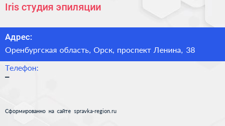 Iris, студия эпиляции по адресу Оренбургская область, Орск, проспект Ленина, 38 в дальнейшем Организация, размещена в следующих категориях: