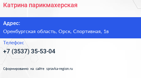 Катрина, парикмахерская по адресу Оренбургская область, Орск, Спортивная, 1в в дальнейшем Организация, размещена в следующих категориях: