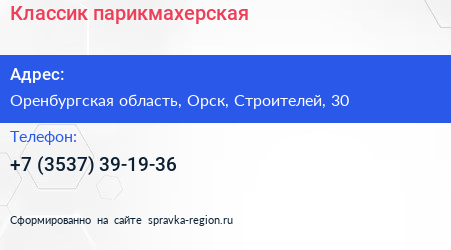 Классик, парикмахерская по адресу Оренбургская область, Орск, Строителей, 30 в дальнейшем Организация, размещена в следующих категориях:
