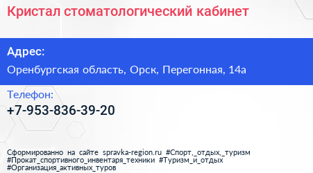 Кристал, стоматологический кабинет по адресу Оренбургская область, Орск, Перегонная, 14а в дальнейшем Организация, размещена в следующих категориях: