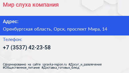 Мир слуха, компания по адресу Оренбургская область, Орск, проспект Мира, 14 в дальнейшем Организация, размещена в следующих категориях: