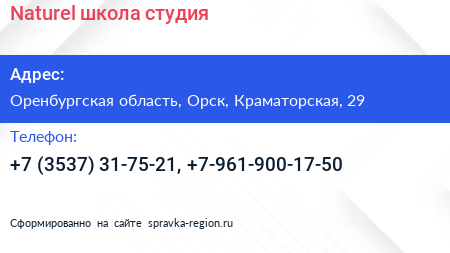 Naturel, школа-студия по адресу Оренбургская область, Орск, Краматорская, 29 в дальнейшем Организация, размещена в следующих категориях: