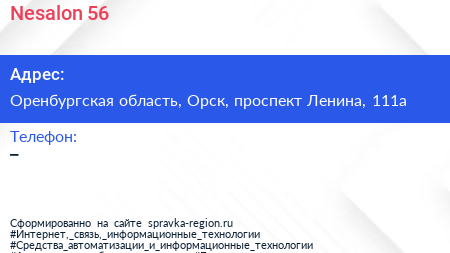 Nesalon 56 по адресу Оренбургская область, Орск, проспект Ленина, 111а в дальнейшем Организация, размещена в следующих категориях: