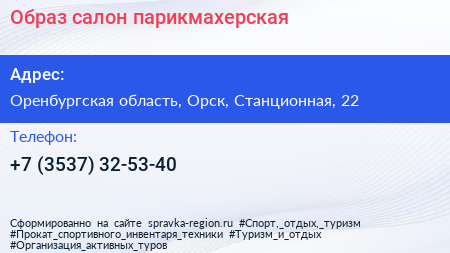 Образ, салон-парикмахерская по адресу Оренбургская область, Орск, Станционная, 22 в дальнейшем Организация, размещена в следующих категориях: