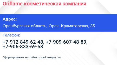 Oriflame, косметическая компания по адресу Оренбургская область, Орск, Краматорская, 35 в дальнейшем Организация, размещена в следующих категориях: