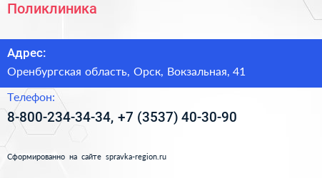 Поликлиника по адресу Оренбургская область, Орск, Вокзальная, 41 в дальнейшем Организация, размещена в следующих категориях: