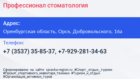 Профессионал, стоматология по адресу Оренбургская область, Орск, Добровольского, 16а в дальнейшем Организация, размещена в следующих категориях: