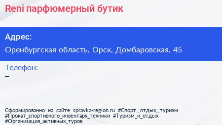 Reni, парфюмерный бутик по адресу Оренбургская область, Орск, Домбаровская, 45 в дальнейшем Организация, размещена в следующих категориях: