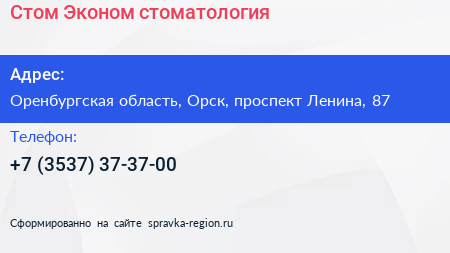 Стом-Эконом, стоматология по адресу Оренбургская область, Орск, проспект Ленина, 87 в дальнейшем Организация, размещена в следующих категориях: