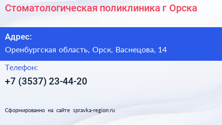 Стоматологическая поликлиника г. Орска по адресу Оренбургская область, Орск, Васнецова, 14 в дальнейшем Организация, размещена в следующих категориях: