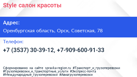 Style, салон красоты по адресу Оренбургская область, Орск, Советская, 78 в дальнейшем Организация, размещена в следующих категориях: