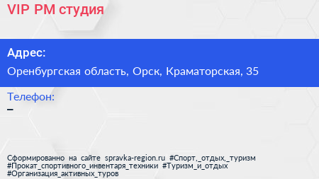 VIP PM, студия по адресу Оренбургская область, Орск, Краматорская, 35 в дальнейшем Организация, размещена в следующих категориях: