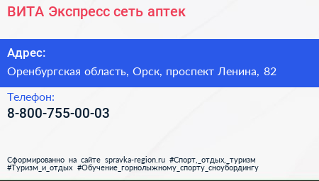 ВИТА Экспресс, сеть аптек по адресу Оренбургская область, Орск, проспект Ленина, 82 в дальнейшем Организация, размещена в следующих категориях: