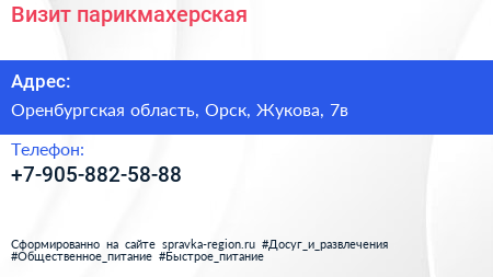 Визит, парикмахерская по адресу Оренбургская область, Орск, Жукова, 7в в дальнейшем Организация, размещена в следующих категориях: