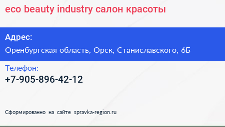 eco beauty industry, салон красоты по адресу Оренбургская область, Орск, Станиславского, 6Б в дальнейшем Организация, размещена в следующих категориях: