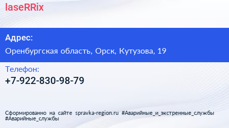 laseRRix по адресу Оренбургская область, Орск, Кутузова, 19 в дальнейшем Организация, размещена в следующих категориях: