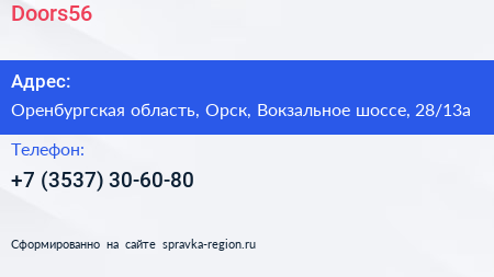 Doors56 по адресу Оренбургская область, Орск, Вокзальное шоссе, 28/13а в дальнейшем Организация, размещена в следующих категориях: