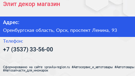 Элит декор, магазин по адресу Оренбургская область, Орск, проспект Ленина, 93 в дальнейшем Организация, размещена в следующих категориях: