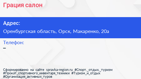Грация, салон по адресу Оренбургская область, Орск, Макаренко, 20а в дальнейшем Организация, размещена в следующих категориях: