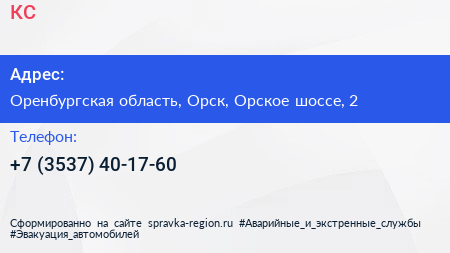 КС по адресу Оренбургская область, Орск, Орское шоссе, 2 в дальнейшем Организация, размещена в следующих категориях: