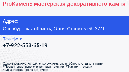 ProКамень, мастерская декоративного камня по адресу Оренбургская область, Орск, Строителей, 37/1 в дальнейшем Организация, размещена в следующих категориях: