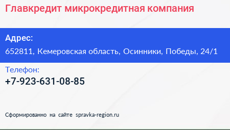 Главкредит, микрокредитная компания по адресу 652811, Кемеровская область, Осинники, Победы, 24/1 в дальнейшем Организация, размещена в следующих категориях: