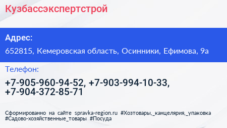 Кузбассэкспертстрой по адресу 652815, Кемеровская область, Осинники, Ефимова, 9а в дальнейшем Организация, размещена в следующих категориях: