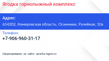 Ягодка, горнолыжный комплекс по адресу 654202, Кемеровская область, Осинники, Ручейная, 10а в дальнейшем Организация, размещена в следующих категориях: