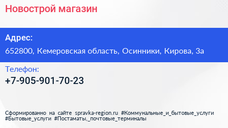 Новострой, магазин по адресу 652800, Кемеровская область, Осинники, Кирова, 3а в дальнейшем Организация, размещена в следующих категориях:
