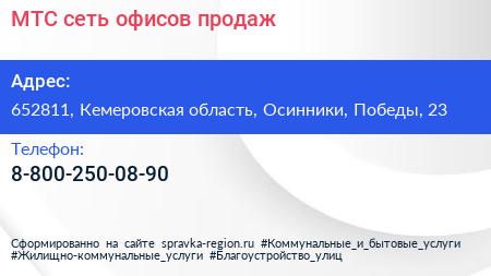 МТС, сеть офисов продаж по адресу 652811, Кемеровская область, Осинники, Победы, 23 в дальнейшем Организация, размещена в следующих категориях: