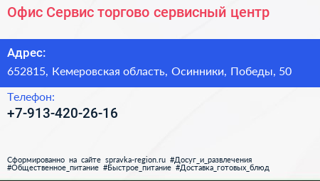 Офис-Сервис, торгово-сервисный центр по адресу 652815, Кемеровская область, Осинники, Победы, 50 в дальнейшем Организация, размещена в следующих категориях: