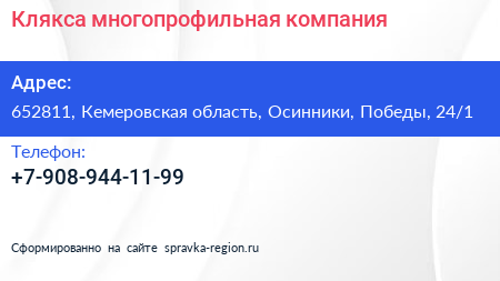 Клякса, многопрофильная компания по адресу 652811, Кемеровская область, Осинники, Победы, 24/1 в дальнейшем Организация, размещена в следующих категориях: