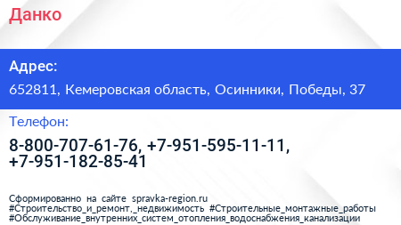 Данко по адресу 652811, Кемеровская область, Осинники, Победы, 37 в дальнейшем Организация, размещена в следующих категориях: