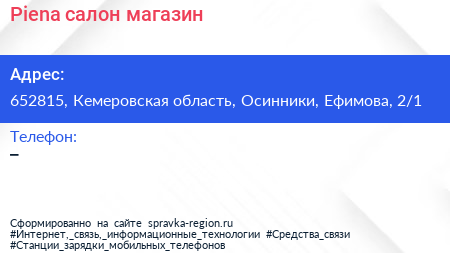 Piena, салон-магазин по адресу 652815, Кемеровская область, Осинники, Ефимова, 2/1 в дальнейшем Организация, размещена в следующих категориях:
