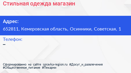 Стильная одежда, магазин по адресу 652811, Кемеровская область, Осинники, Советская, 1 в дальнейшем Организация, размещена в следующих категориях: