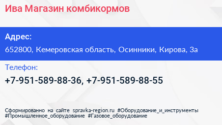 Ива, Магазин комбикормов по адресу 652800, Кемеровская область, Осинники, Кирова, 3а в дальнейшем Организация, размещена в следующих категориях: