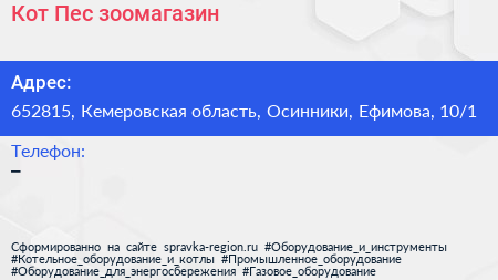 Кот Пес, зоомагазин по адресу 652815, Кемеровская область, Осинники, Ефимова, 10/1 в дальнейшем Организация, размещена в следующих категориях: