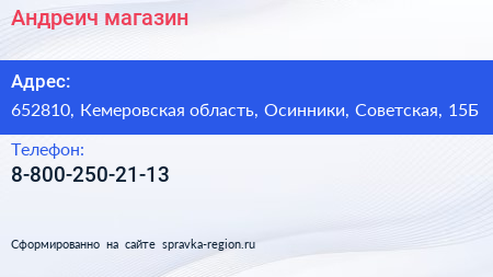 Андреич, магазин по адресу 652810, Кемеровская область, Осинники, Советская, 15Б в дальнейшем Организация, размещена в следующих категориях: