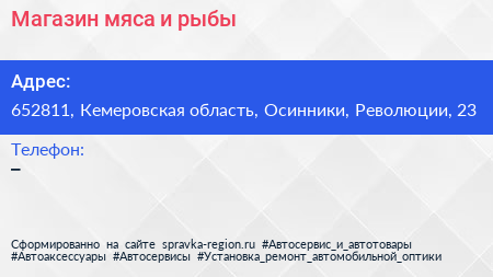 Магазин мяса и рыбы по адресу 652811, Кемеровская область, Осинники, Революции, 23 в дальнейшем Организация, размещена в следующих категориях: