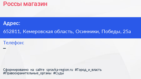 Россы, магазин по адресу 652811, Кемеровская область, Осинники, Победы, 25а в дальнейшем Организация, размещена в следующих категориях: