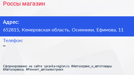 Россы, магазин по адресу 652815, Кемеровская область, Осинники, Ефимова, 11 в дальнейшем Организация, размещена в следующих категориях: