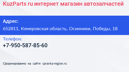 KuzParts.ru, интернет-магазин автозапчастей по адресу 652811, Кемеровская область, Осинники, Победы, 18 в дальнейшем Организация, размещена в следующих категориях: