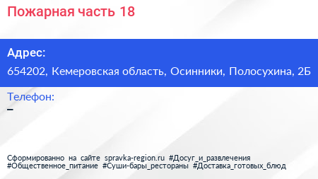 Пожарная часть №18 по адресу 654202, Кемеровская область, Осинники, Полосухина, 2Б в дальнейшем Организация, размещена в следующих категориях: