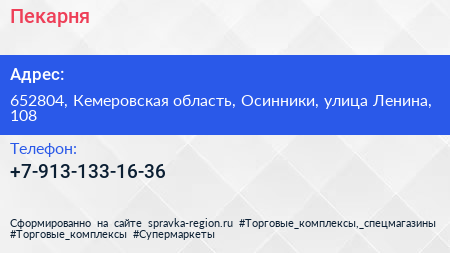 Пекарня по адресу 652804, Кемеровская область, Осинники, улица Ленина, 108 в дальнейшем Организация, размещена в следующих категориях: